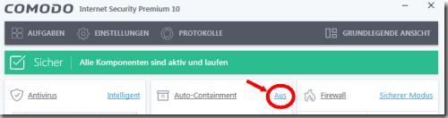 Segen und Fluch zugleich: Internet Security Suiten Die Konkurrenz ist groß bezüglich “Internet Security Suiten“. Da sind herausstechende Verkaufsargumente wichtig. Ein solches Verkaufsargument ist die sogenannte Heuristik (Viren-Vermutungssystem). Dass hierbei Fehlalarme auftauchen, welche Software-Hersteller in schlechtes Licht rücken, nimmt man hier billigend in Kauf. Um das Thema Heuristik noch zu toppen, gibt es nun noch die so genannte Virtualisierung (Sandbox) für Software, welche der Anwender installiert. Selbst signierte Software muss dies über sich ergehen lassen. Diese sogenannte Virtualisierung von Software sorgt dafür, dass die Software quasi in einem Käfig ausgeführt wird, abgeschirmt vom realen Betriebssystem. Vom Prinzip her kein schlechter Gedanke. Das Ganze hat aber entscheidende Nachteile. Diese virtuelle Umgebung hat nur Sinn, wenn dort genau die gleichen Voraussetzungen sind wie beim realen Betriebssystem. Das ist aber nicht der Fall. Das heißt, dass selbst gut programmierte und signierte Software auf die Nase fallen kann, weil sie in der virtuellen Welt nicht zurechtkommt. Fehlerhafte Installationen sind die Folge, welche der Anwender dem Hersteller der zu installierten Software zuschreibt. Selbst wenn die installierte Software in der Sandbox läuft, wird hier eine Datenbank, welche eine Datensicherung durchführen will, ihre Probleme haben. Das Ganze ist nicht nur ärgerlich für Anwender, mehr noch für die betroffenen Softwarehersteller, die ihre Software nicht verkaufen können. Die Lösung ist hier die Sandbox auszuschalten, wenn ein Programm nicht installiert werden kann - selbst wenn es signiert ist. Jüngstes Problem bezüglich Sandbox und der fehlerhaften Virtualisierung ist die Internet Security Suite von COMODO. Diese Sandbox kann bei Problemen mit der Installation von Software wie folgt ausgeschaltet werden .... - Doppeklick auf das COMODO-Symbol im Systray. - Nach dem Erscheinen des COMODO-Fensters das "Auto-Containment" (in der Mitte des Fensters) auf "Aus" stellen.